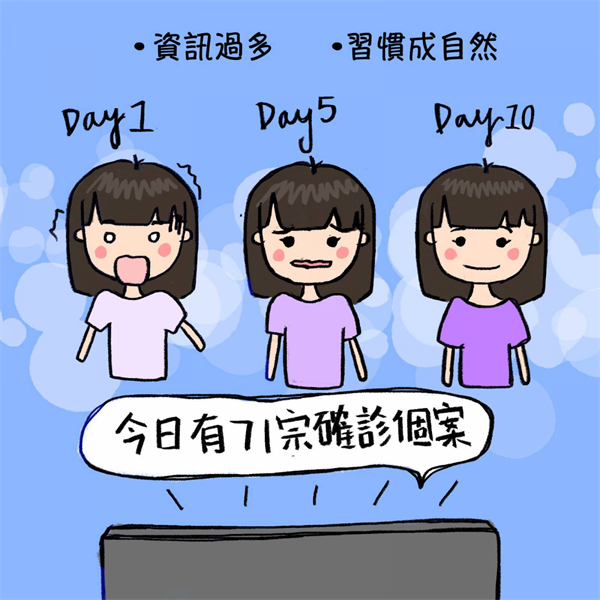 第二個因素係資訊超載。當我哋反覆接收相似資訊時,腦部最初可能會因為見到威脅而作出強烈反應。但久而久之,反應會逐漸減少,對同樣嘅訊息嘅反應無一開始咁大,從而令人變得鬆懈。