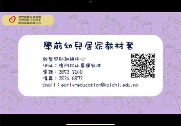 因應新型冠狀病毒肺炎疫情的發展,為減少疫情在社區傳播風險,澳門展智服務協會屬下啟智早期訓練中心暫停所有基本服務。為方便服務使用者亦能在家中做居家訓練,中心所推出的「學前幼兒居家教材套」的衛教影片已上傳到YouTube平台,並會不定時更新影片。