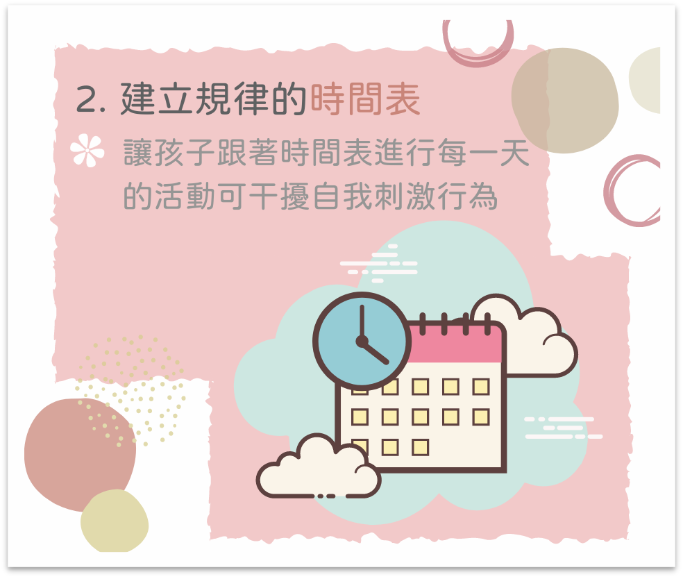 讓孩子跟着時間表進行每一天的活動可干擾自我刺激行為。