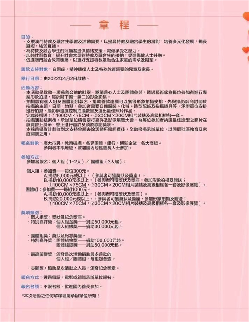 2022關注自閉症人士大灣區聯動【星閃粵灣】之【樂善在濠江】系列活動-善心遍全城,形象永留存-形象攝影慈善籌款活動開始啦!