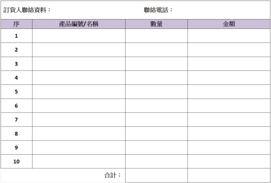 *以上回條可透過電郵或傳真直接發送給我們。訂貨單發送後請致電與中心職員查詢:
