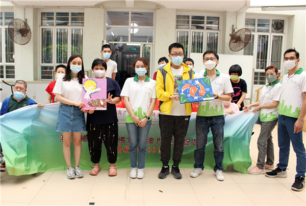 啟康中心吳家平主任與學員們代表協會致送了錦旗及學員畫作予睡佛堂及地産促進會以表謝意,感謝澳門的善心團體一直致力關懷弱勢社群,共同祈願新冠疫情盡快結束,共同構建友愛共融社區!