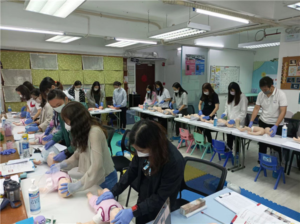 在澳門基金會的資助下,啟智早期訓練中心全體同工於2022年9月1至2日接受專業培訓-「嬰幼兒急救技巧培訓」。課程內容十分豐富,包括危急處理程序、復原臥式、心肺復甦技巧、自動體外心臟去顫器及電擊貼片的使用和操作、哽塞處理、簡易傷口包紮及處理。