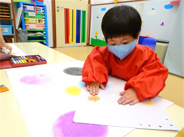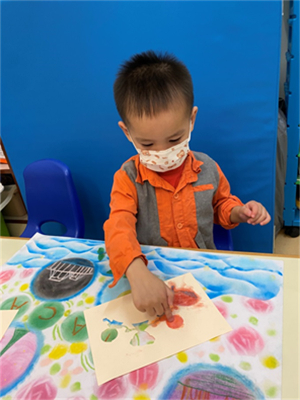 啟智早期訓練中心課堂當中會加入藝術創作元素,讓幼兒從不同形式接觸色彩的世界,是次課堂運用到粉彩和小指頭,繪畫出富含澳門建築特色的畫作,每一個手指印都印證着歷史的故事,讓幼兒從小認識到澳門的文化,蘊含中西文化匯聚的精髓,促使我們熱愛社會、溫暖他人、關愛社群、大家彼此擁抱,攜手並進,展望美好的未來。