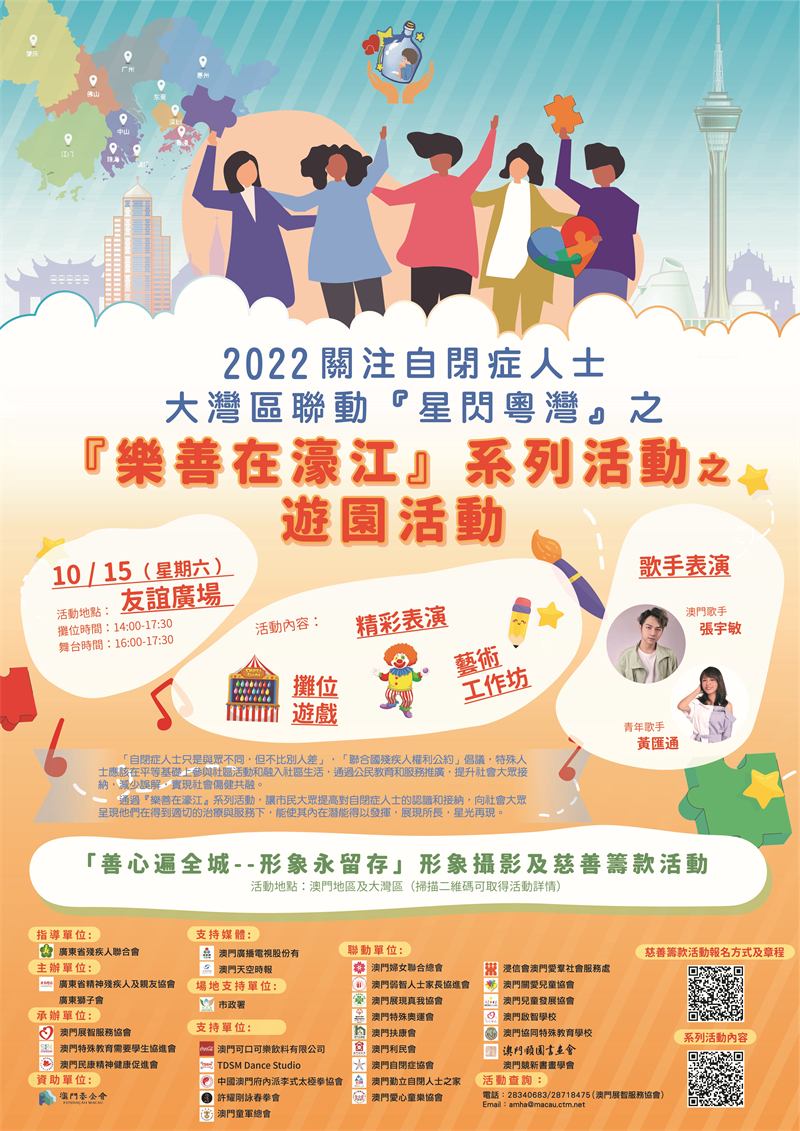 活動簡介:通過『樂善在濠江』系列活動。讓市民大眾提高對自閉症人士的認識和接納,向社會大眾呈現他們在得到適切的治療與服務下,能使其內在潛能得以發揮,展現所長,星光再現。