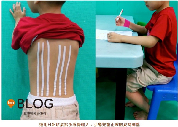 綜合文獻顯示小兒個案通常軀幹控制與穩定性能力皆較差,姿勢的不正確,而使整體執行動作能力深受影響。文獻顯示貼紮運用於發展遲緩之孩童上,可以增加其動態平衡控制能力與動作反應時間;運用於腦性麻痺之孩童,可以增進動作穩定性與靜、動態平衡控制能力;貼紮運用於斜頸之孩童,可以增加肌肉柔軟度與頸部控制能力,另外貼紮合併其他治療更可以提高其復健成效,貼紮治療屬於暫時性效果,建議還是需要有運動治療之共同介入,才可以獲得較佳之效果。