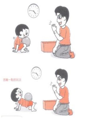 (C)爸媽可以將球放在孩子大腿或胸口,讓孩子在往前移動時帶著球往另一端, 同時觀察孩子姿勢是否穩定,如果孩子雙手雙腳力量不平均,身體會歪一側及球就容易掉落。