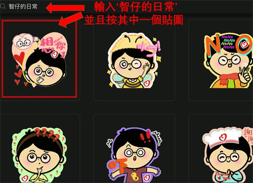 步驟四:輸入‘智仔的日常’並且按其中一個貼圖