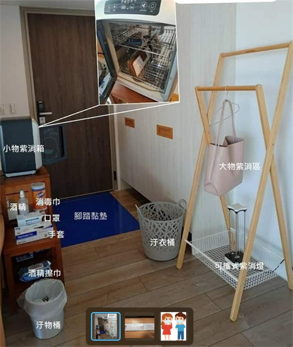 8. 就寢前,用紫外線消毒燈消毒客廳及玄關(人須迴避、保持室內空氣流通)。