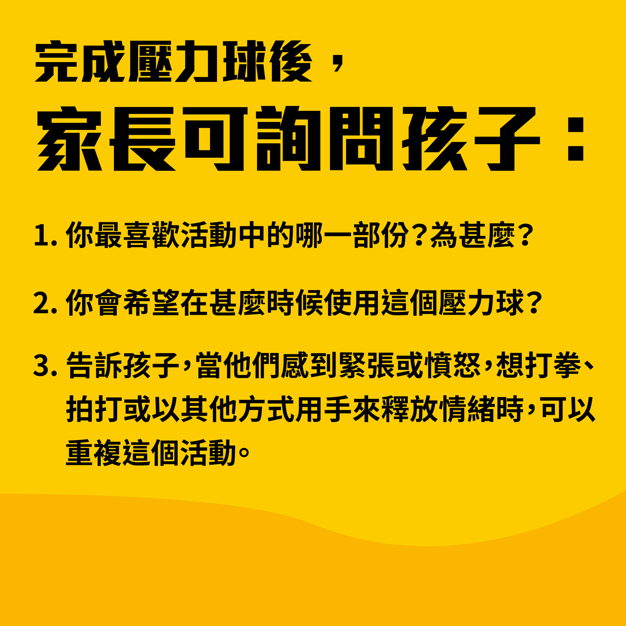 完成壓力球後,家長可詢問孩子: