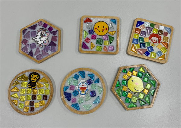 馬賽克杯墊的材料顏色鮮艷奪目,製作簡單,服務使用者能獨立完成作品,發揮其創意天賦,提升自信,而且可以達致滿滿的成功感。